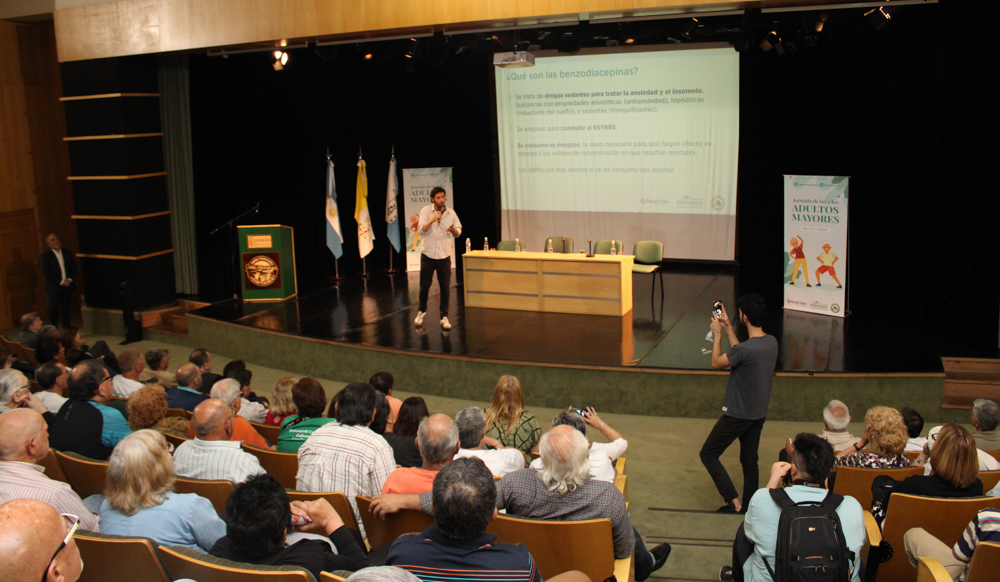 El evento continuó con el Lic. en Psicología, Gonzalo Beladrich, el cual habló sobre ‘Consumo de Medicamentos’ y finalmente se presentó el Lic. Marcelo Salaberry, quien se refirió a la ‘Prevención de Caídas’, el cual culminó su exposición haciendo cantar y bailar a todos/as los presentes en el auditorio.