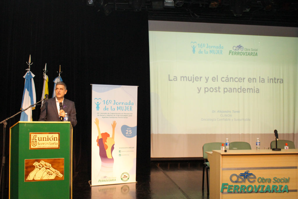 El primer expositor fue el especialista en Oncología y Director de Clinon, Dr. Alejandro Turek, quien habló sobre ‘La Mujer y el Cáncer en la Intra y Post Pandemia’, haciendo hincapié en los problemas que trajo aparejado el aislamiento, tanto por los malos hábitos como por la ausencia de consultas médicas que posibiliten detectar a tiempo las enfermedades.