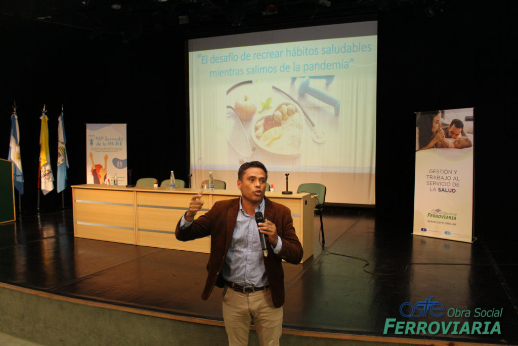 La última presentación la realizó el Educador Marcelo Salaberry, quien habló sobre ‘El Desafío de Recrear Hábitos Saludables mientras Salimos de la Pandemia’ el mismo interactuó con las presentes, y culminó haciendo bailar a todo el auditorio.