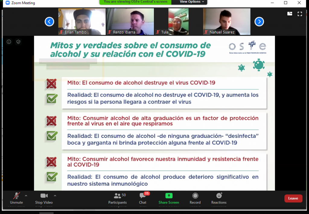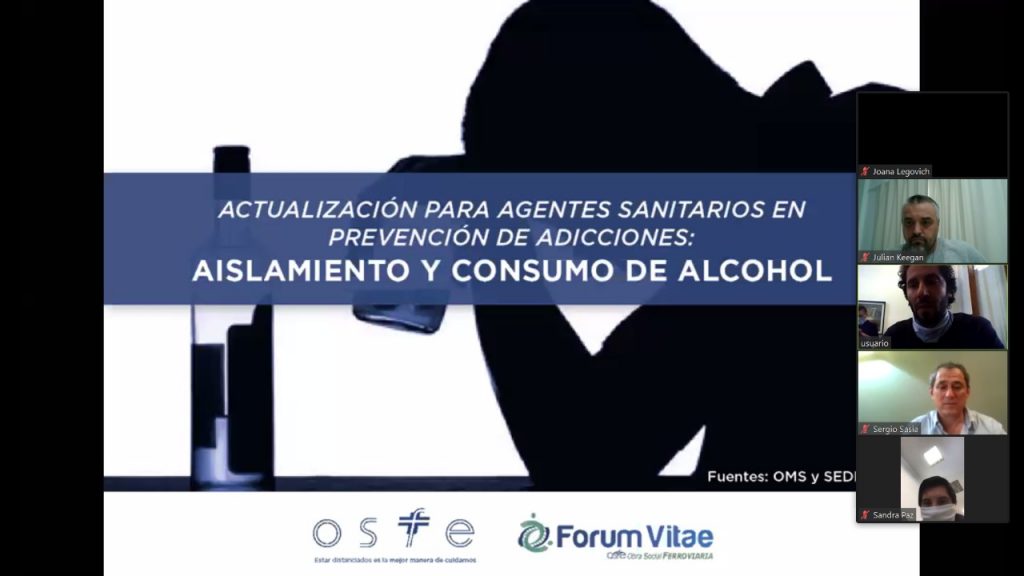 Teniendo en cuenta esto, la Obra Social Ferroviaria desarrolló una nueva Capacitación Virtual, a través de Proyecto ECHO (plataforma Zoom), sobre “Aislamiento y Consumo de Alcohol” para actualizar a quienes se formaron como Agentes Sanitarios en Prevención de Adicciones, con el fin de brindar información y recomendar medidas preventivas para reducir riesgos y daños asociados al consumo de alcohol, durante el aislamiento social, preventivo y obligatorio por la pandemia del COVID-19.