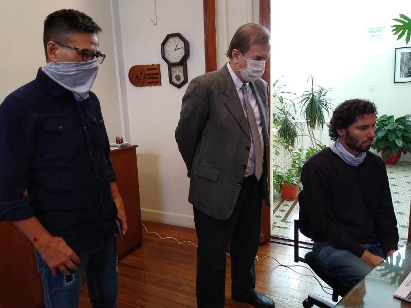 El Secretario General UF, Cro. Sergio Sasia; el Dr. Roberto Canay; el Directivo suplente del Ferrocarril Urquiza, Cro. Fabian Galeano; el Secretario Gral. de la Secc. Corrientes, Cro. Jorge Fernández; el Secretario Gral. de la Secc. Entre Rios, Cro. Hugo Pezzarini; el miembro del Bloque OSFE-LF, Cro. «Cacho» Garcia.