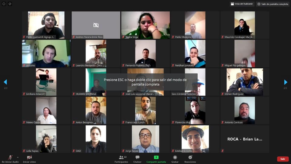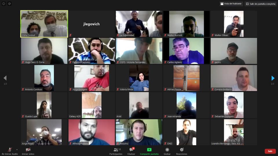 - 1º >> 08/05/2020 • Secc. Lynch UF como así también Entre Ríos y Corrientes; las Delegaciones Paso de los Libres, Paraná y Zárate (44 compañeros/as conectados)